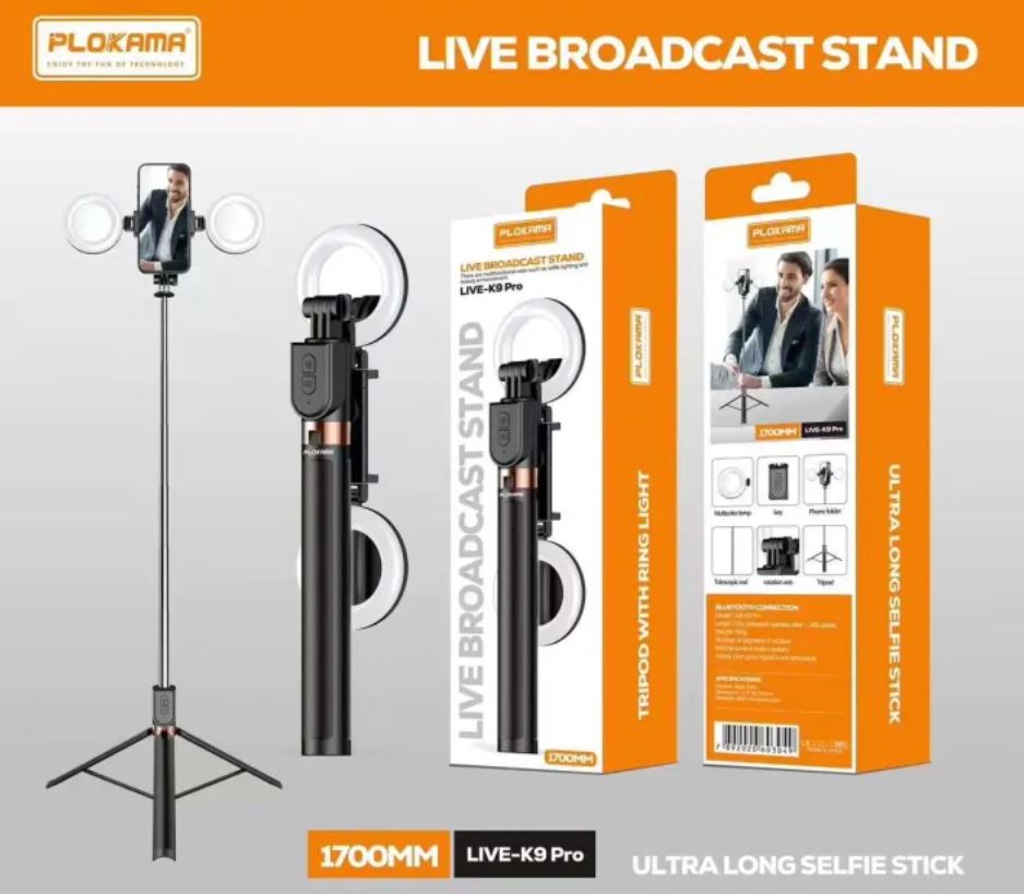 Plokama K9 Pro Double LED Selfie Stick Tripod